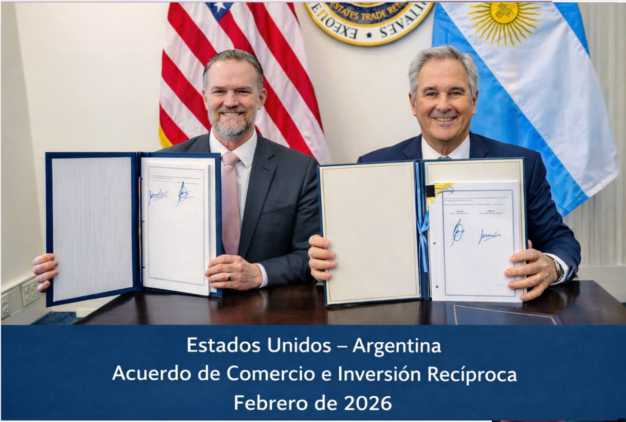 La firma es pública y formal. ARTI fue suscrito en Washington el 5 de febrero de 2026 por el embajador de la USTR Jamieson Greer y el ministro argentino Pablo Quirno. Su entrada en vigor es procedimental: el artículo 6.7 establece que ARTI entrará en vigor 60 días después de que ambas partes intercambien notificaciones escritas certificando el cumplimiento de sus procedimientos legales aplicables, o en otra fecha que acuerden. En Argentina, la Oficina del Presidente señaló que el acuerdo será enviado al Congreso conforme al procedimiento constitucional.